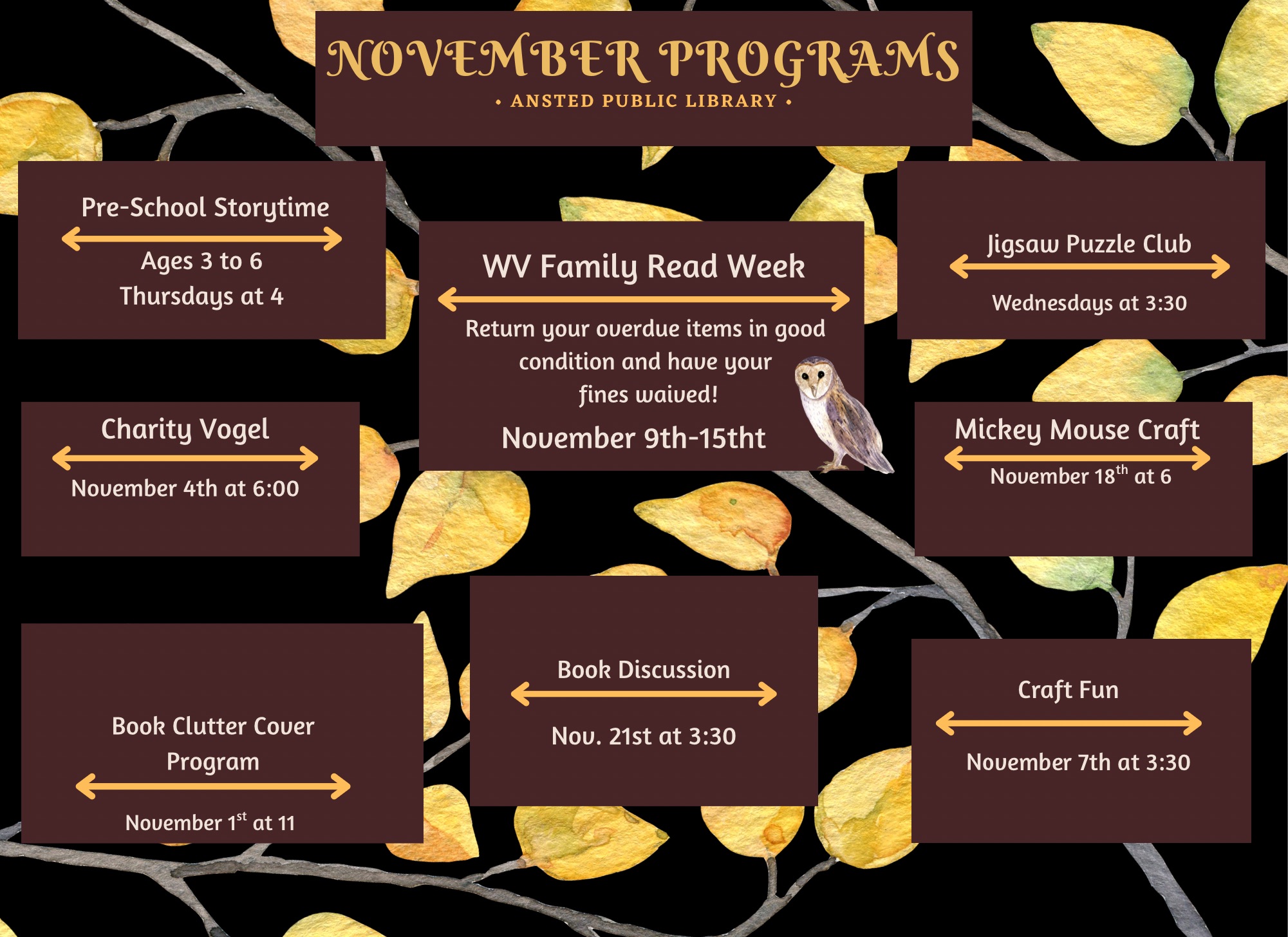 Come join our Adult Book Club at the Administration Building on the 2nd Tuesday of each month at 1:00 pm.