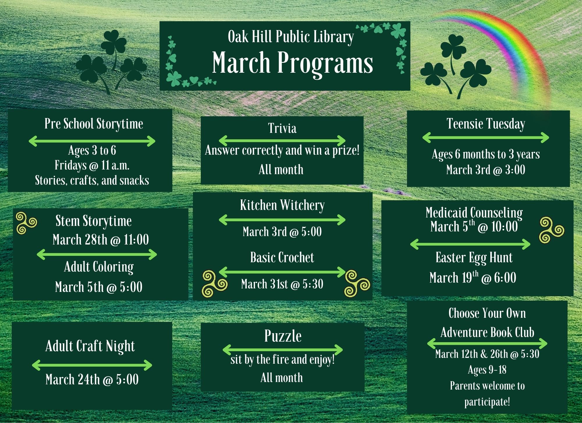 The Fayette County Public Library is so excited to present to you the White Oak Story Trail! It starts at the Depot on the White Oak Rail Trail and goes to Tom's.