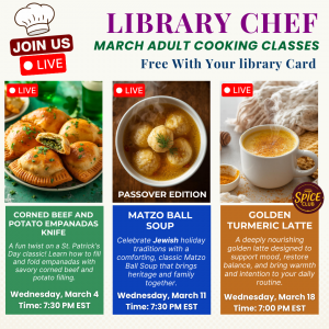 Click herehttps://fayette.librarychef.com to create an account or sign in if you already have one on Library Chef—it's free and easy! No Zoom required!