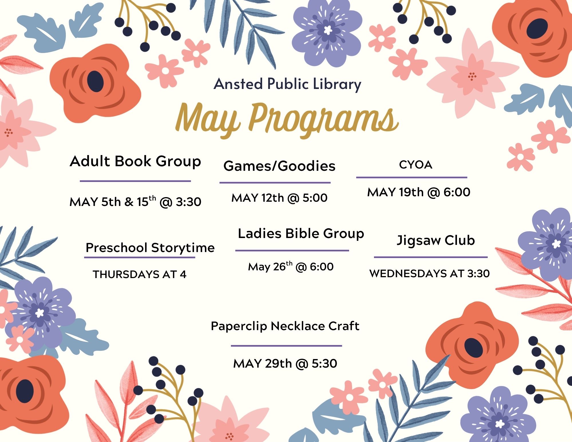 PROGRAMS FOR APRIL!