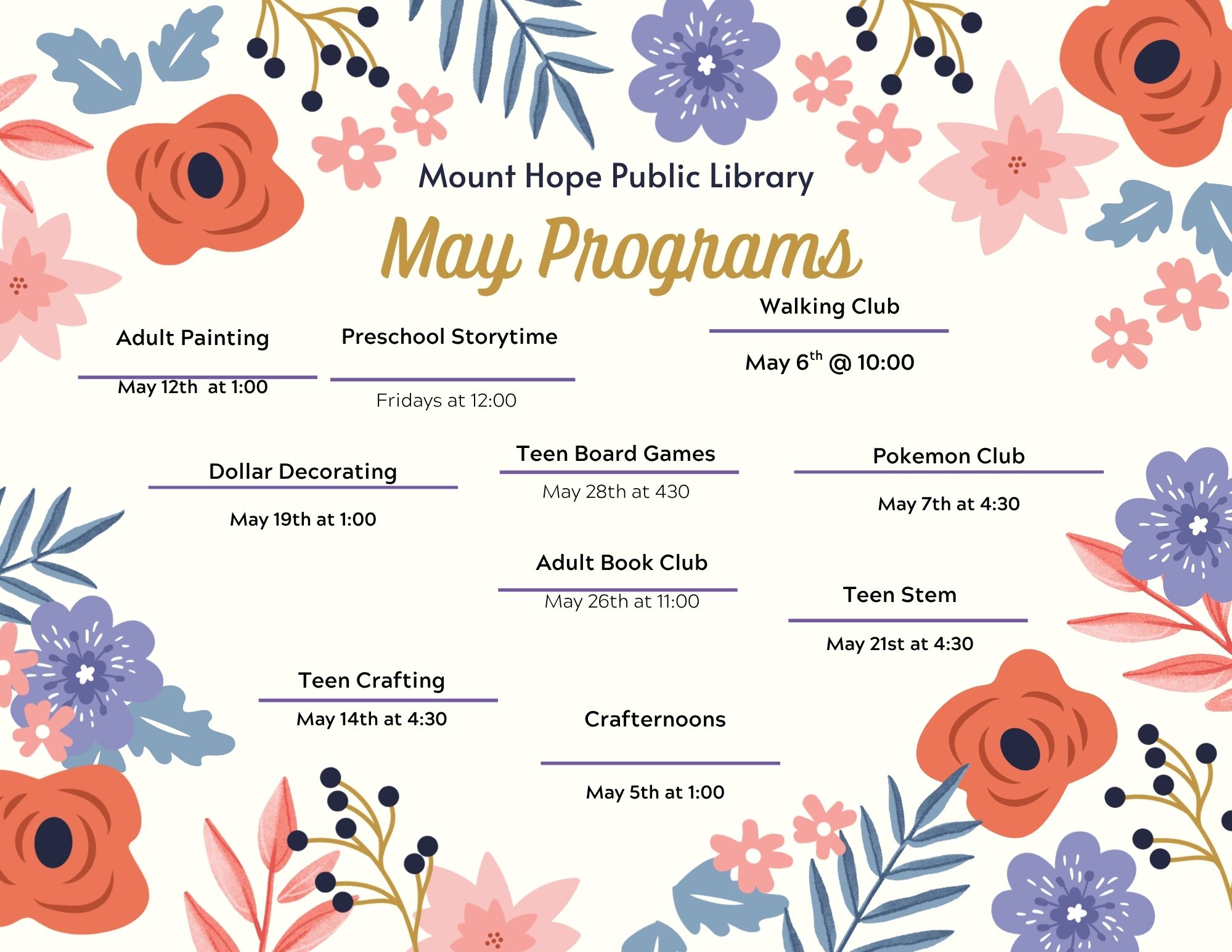 Come join our Adult Book Club at the Administration Building on the 2nd Tuesday of each month at 1:00 pm.