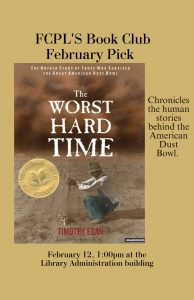 Come join our Adult Book Club at the Administration Building on the 2nd Tuesday of each month at 1:00 pm.